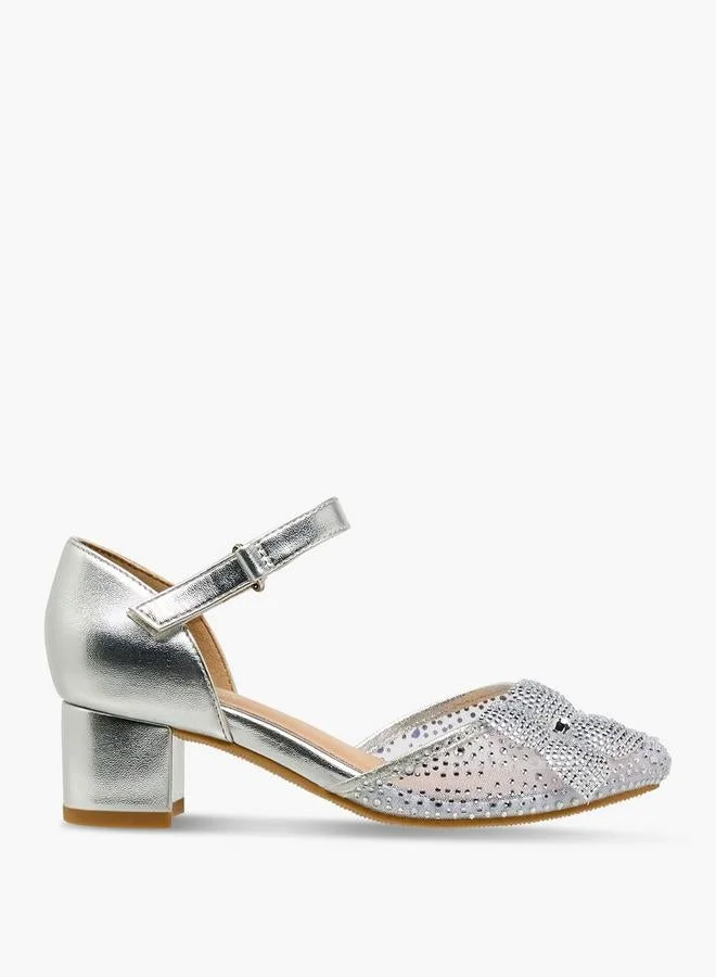 Girls' Metallic Block Heels Shoes with Hook and Loop Closure