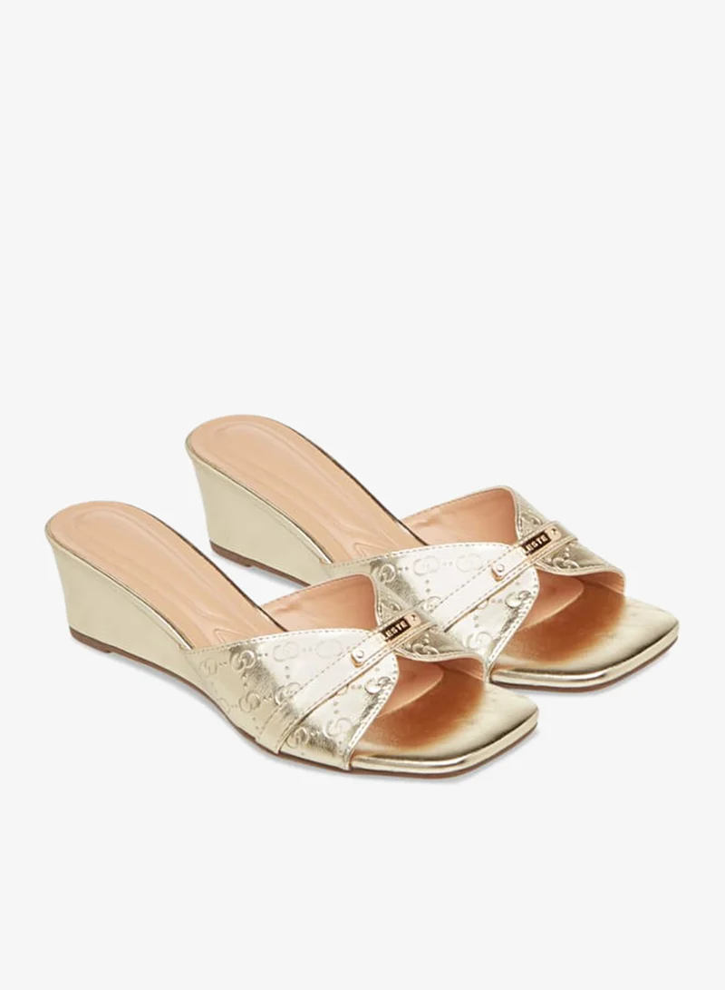 Women's Monogram Embossed Slip-On Sandals with Wedge Heels