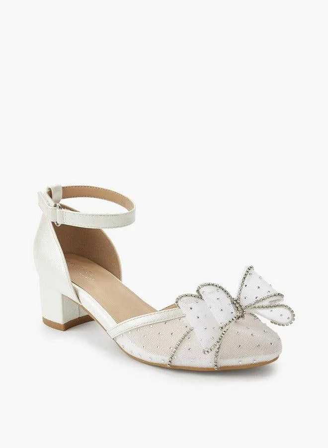 Girls Bow Embellished Block Heel Shoes Ramadan Collections