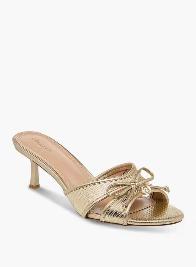 Women's Bow Detail Slip-On Sandals with Flared Heels