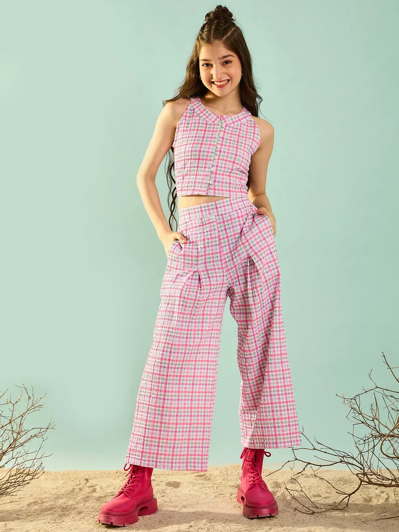 Cherry & Jerry Woven Sleeveless Checks Straight Co-ords Set-Pink