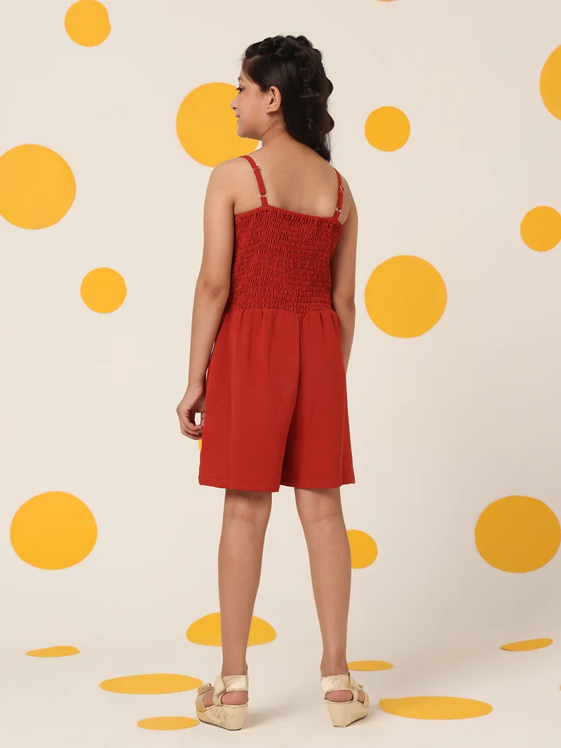 Cherry & Jerry Dark Orange Smocking and Shoulder Strap Playsuits