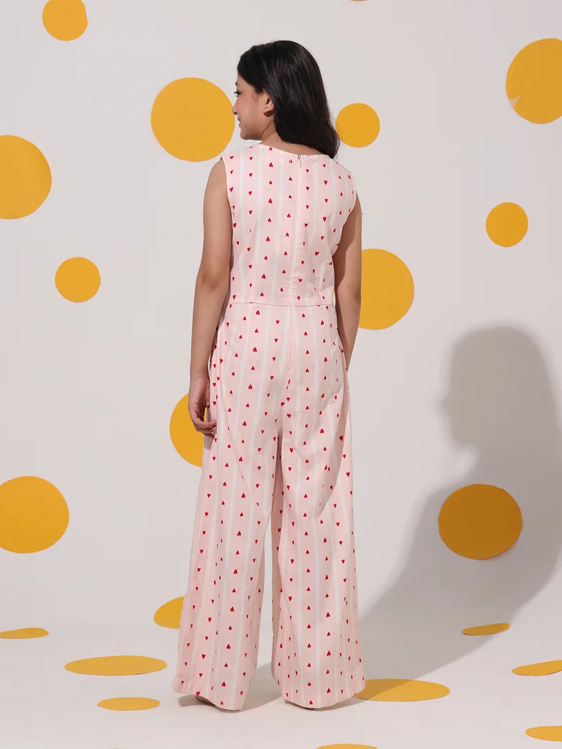 Cherry & Jerry Rayon Heart Printed Full Length Jumpsuits