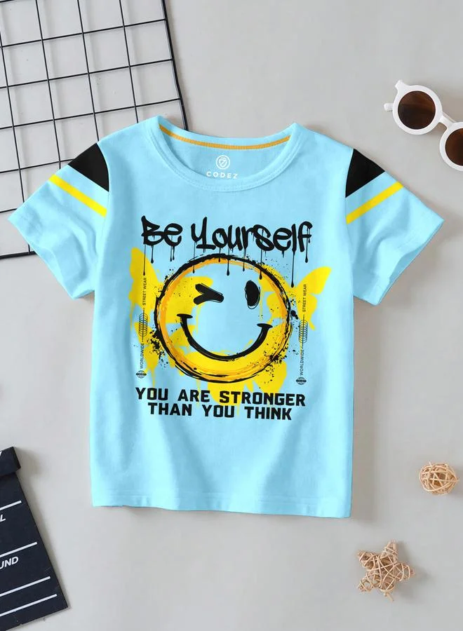 Kids Blue Graphic Print Cotton T-Shirt