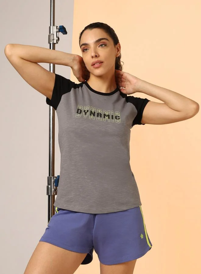 Grey Graphic Print Raglan Sleeve T-Shirt