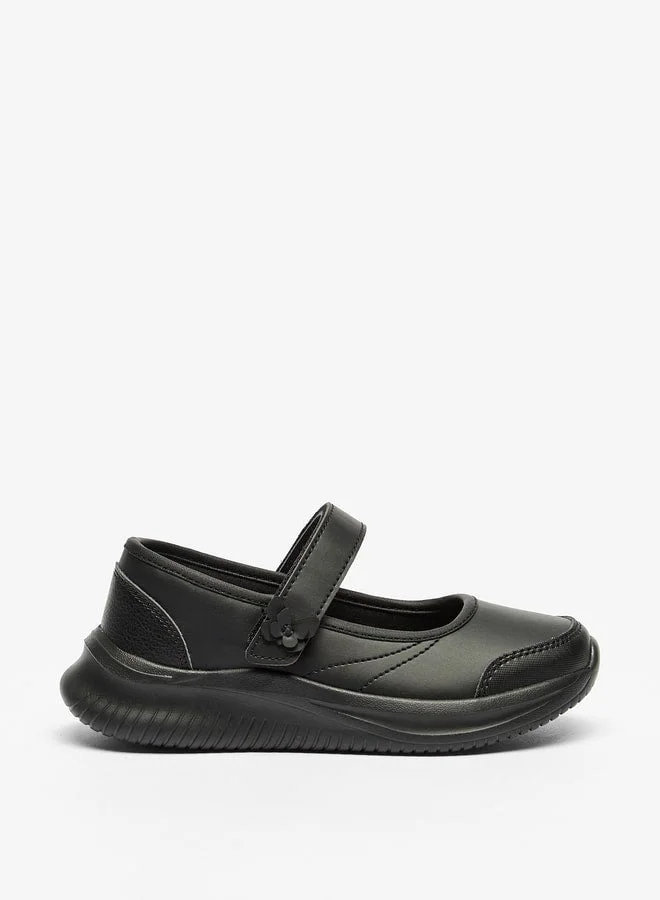 Girls Solid Mary Jane Shoes with Hook and Loop Closure