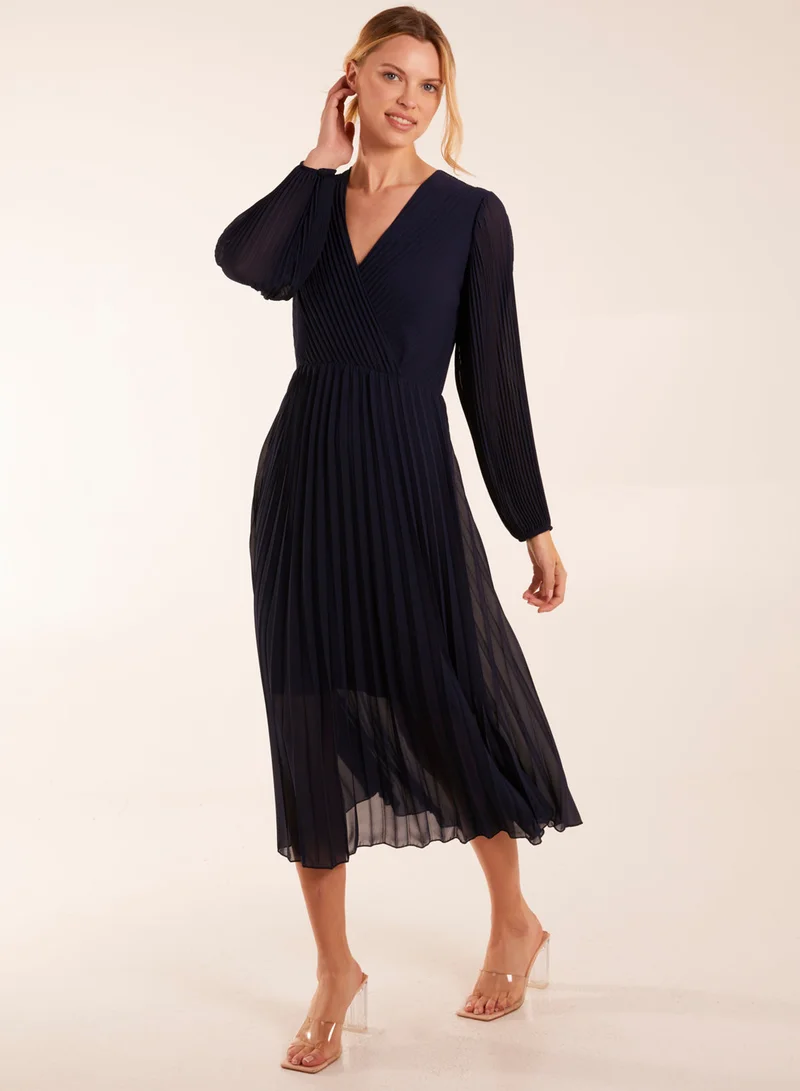 Printed Cut-Out Detail Dress with Pleated Skirt