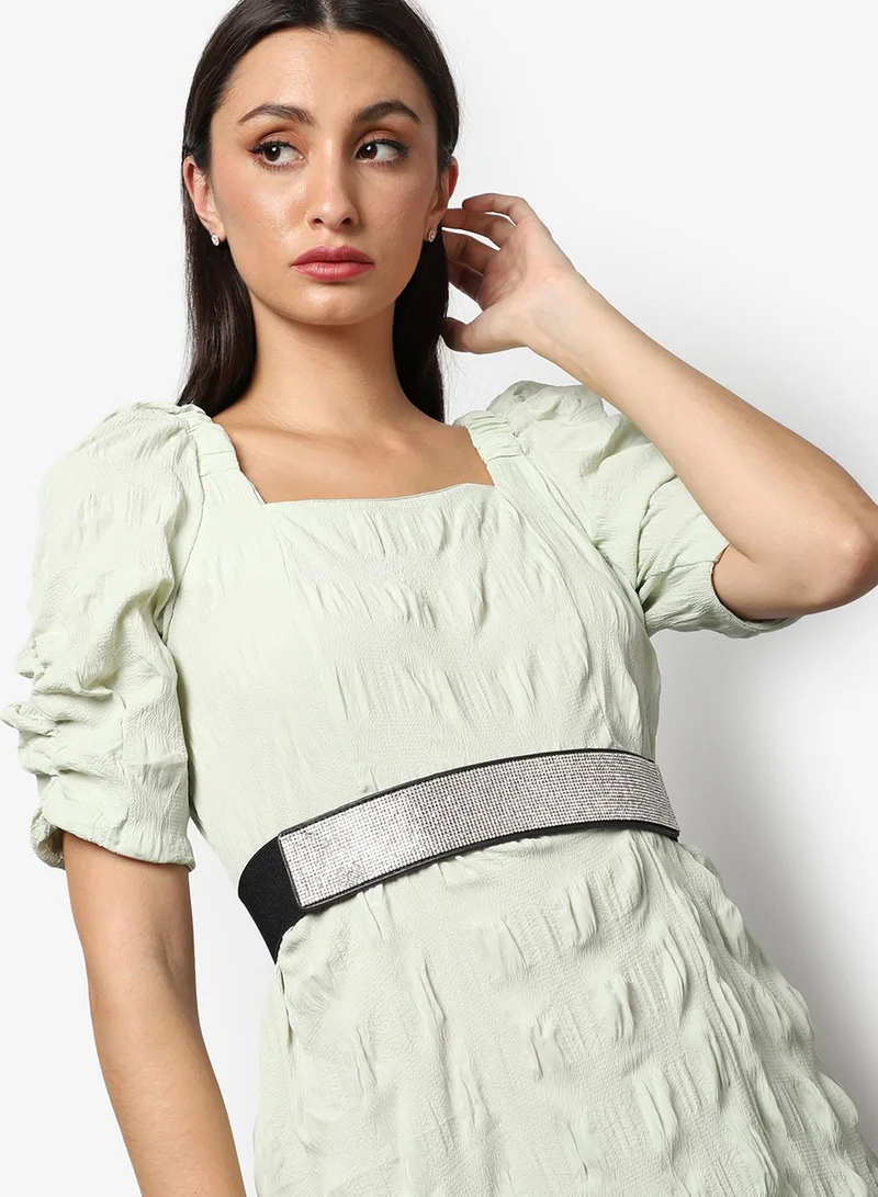 Lace Shoulder Detail Asymmetric Hem Midi Dress