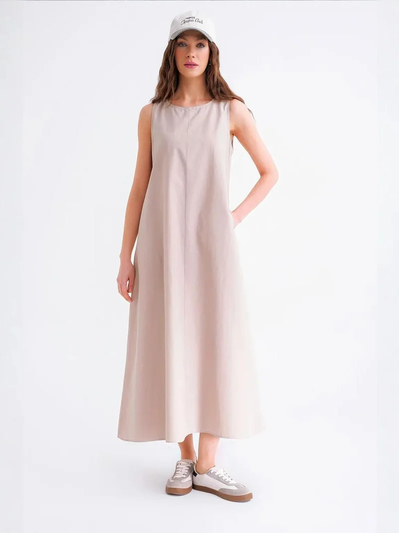 Globus Women Colourblocked Semi Sheer Net A-Line Midi Dress With Slip