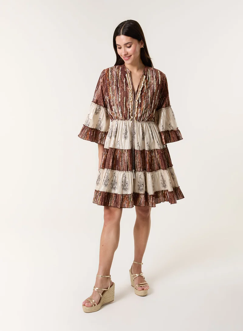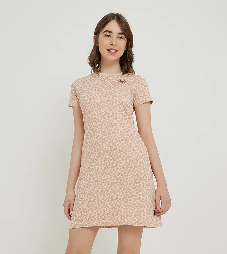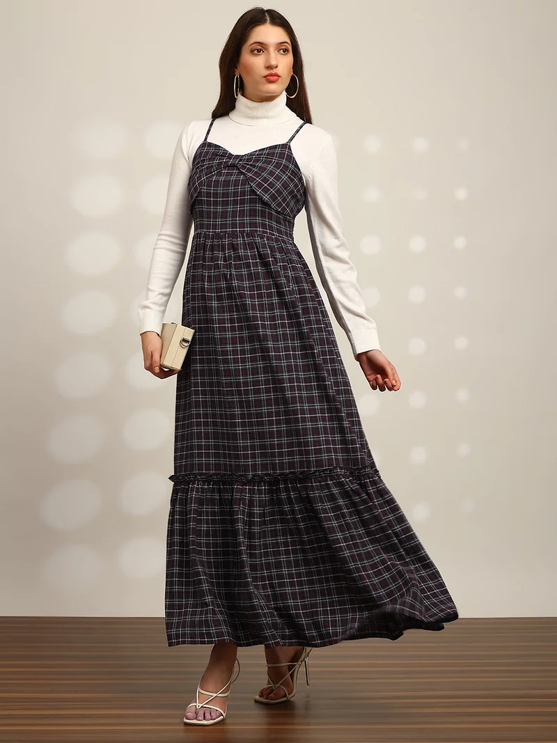 Styli Dobby High Neck Smocked Detail Midi Dress