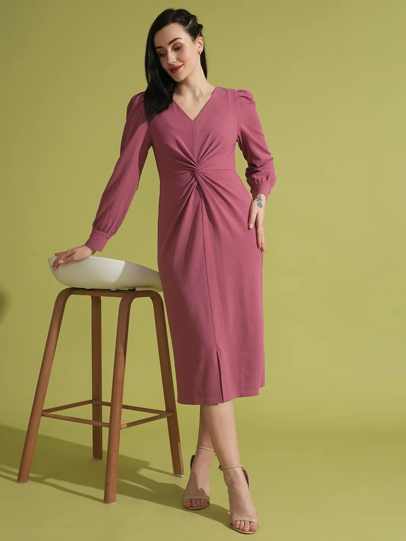 Women's Scarlet Red Cut-Out Mini Dress For Casual Wear | Round Neck | Quarter Sleeve | Pull On Closure | Dress Designed With Comfort Fit For Woman & Girls