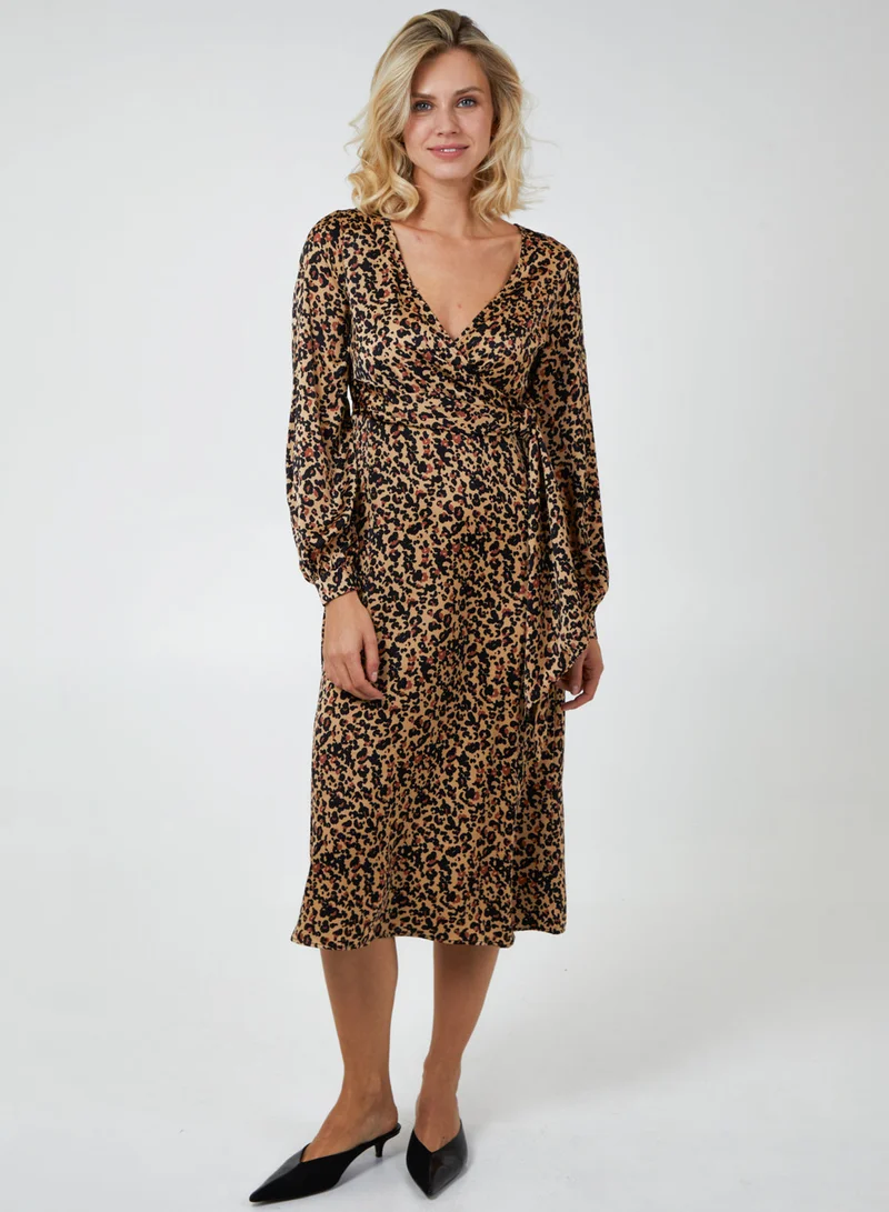 2Xtremz All-Over Print Dress with Volume Sleeves and Tie-Up Belt