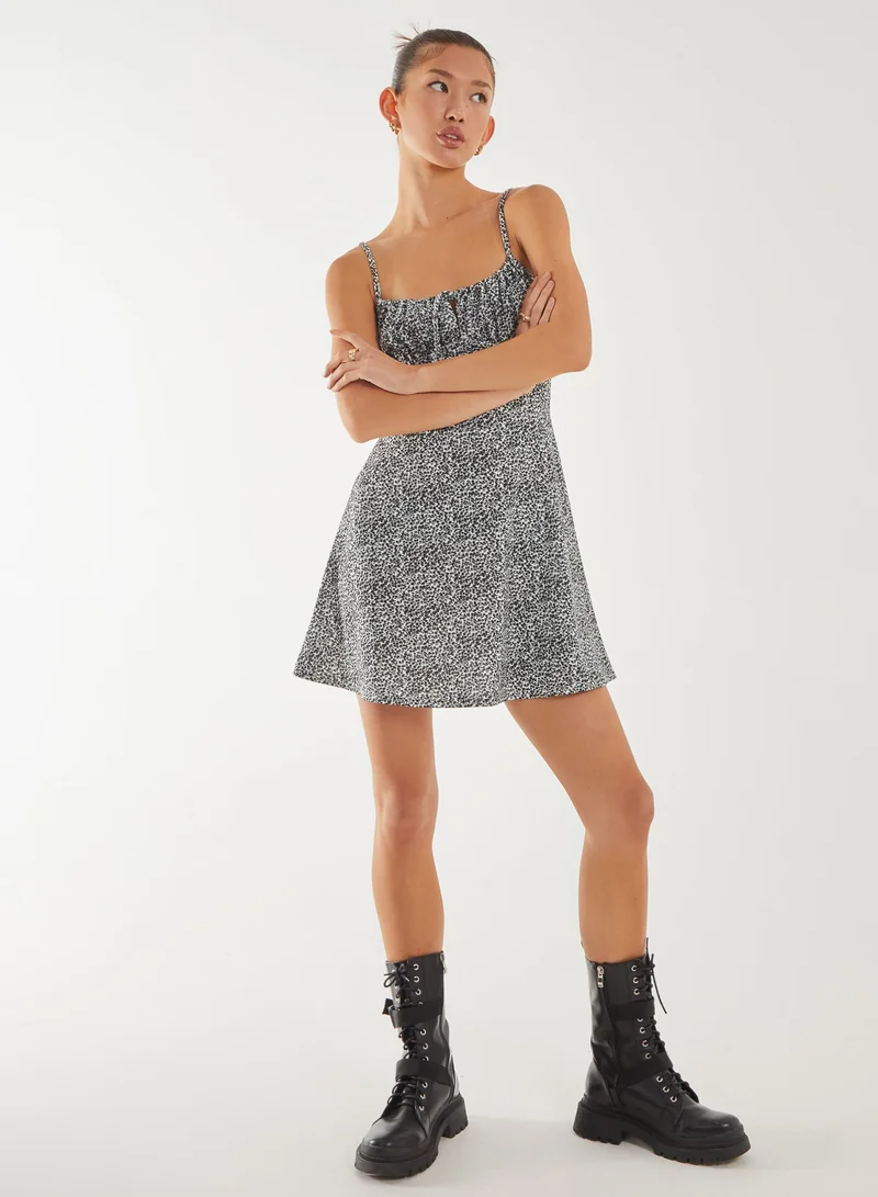 Globus Women Abstract Print Square Neck Strappy Shoulder Ruched Midi Bodycon Party Dress