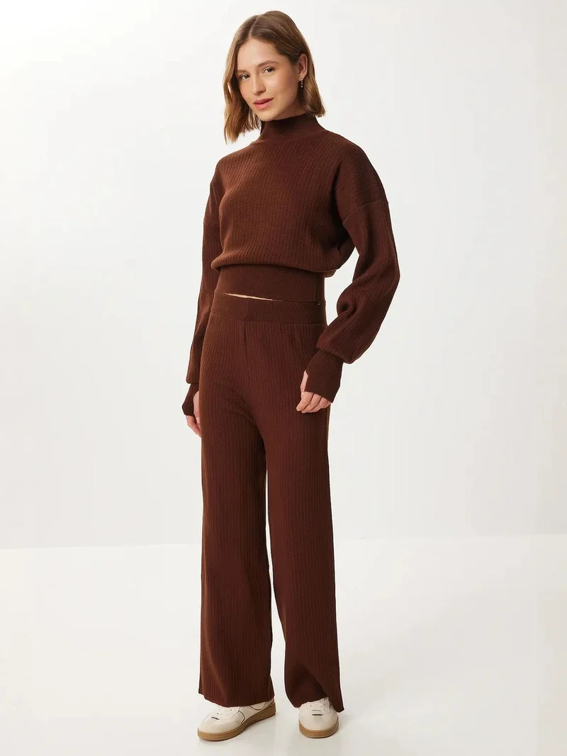 ISTANBUL High Waist Crew Neck Long Sleeve Cotton Two-Piece Set