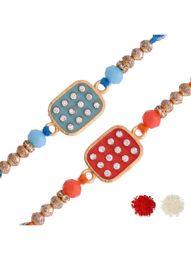 Two Beautifully Crafted Vibrant Red And Blue Enamel Designs Rakhi
