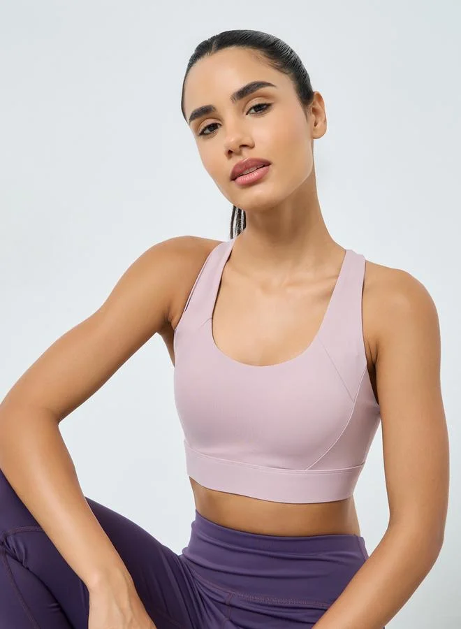 Peep Racerback Hook and Eye Seam Detail Sports Bra