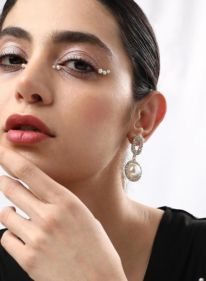 Pearl Hoop Stone Earrings