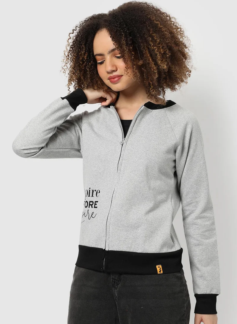 Women's Light Grey Inspire-Before-Expire Print Zip-Front Sweatshirt