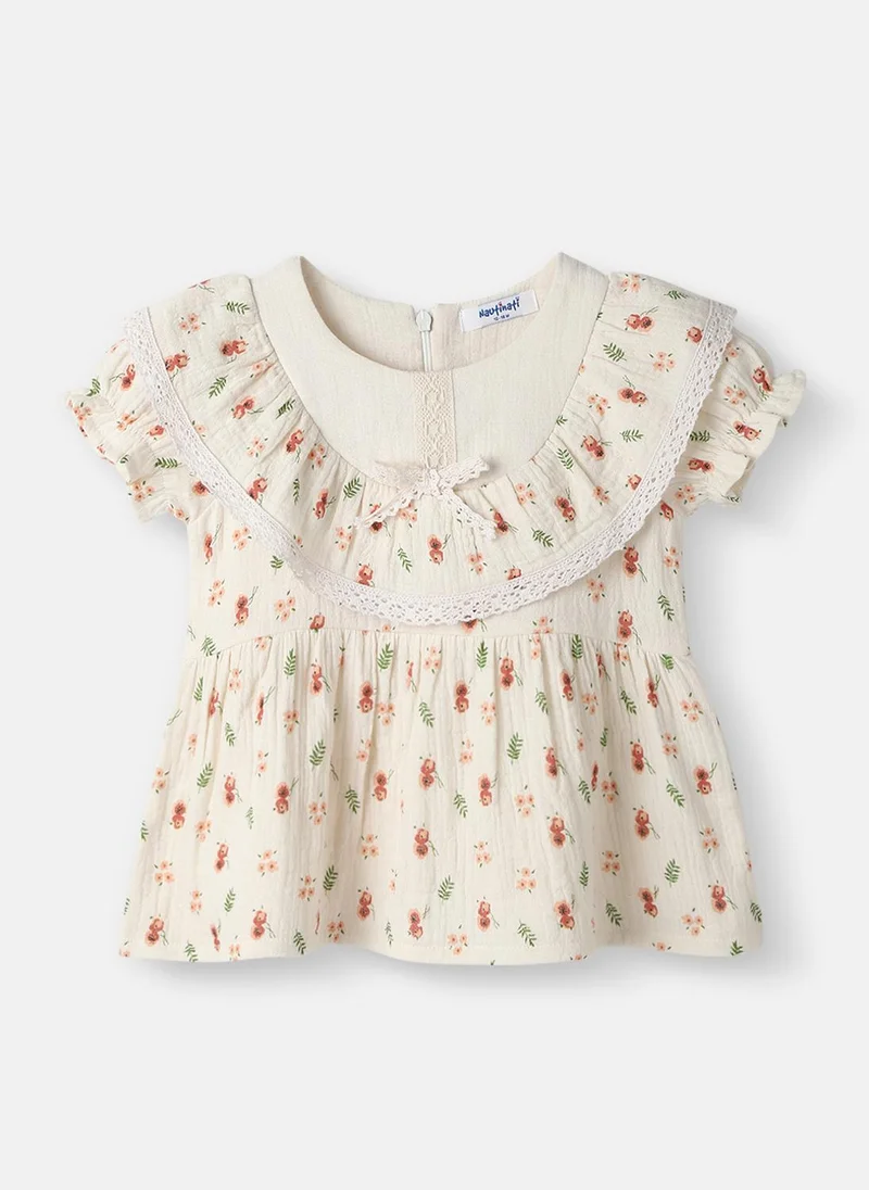 Globus Women White Allover Floral Print V-Neck Reglan Sleeves Top