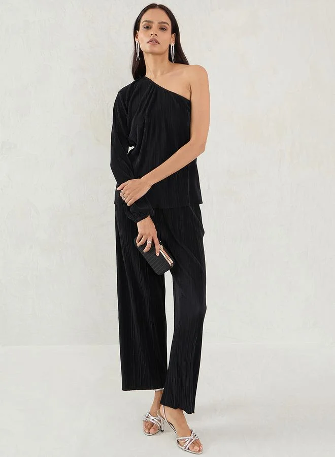 Globus Women Navy Blue One Shoulder Long Sleeves Ribbed Mini Bodycon Party Dress