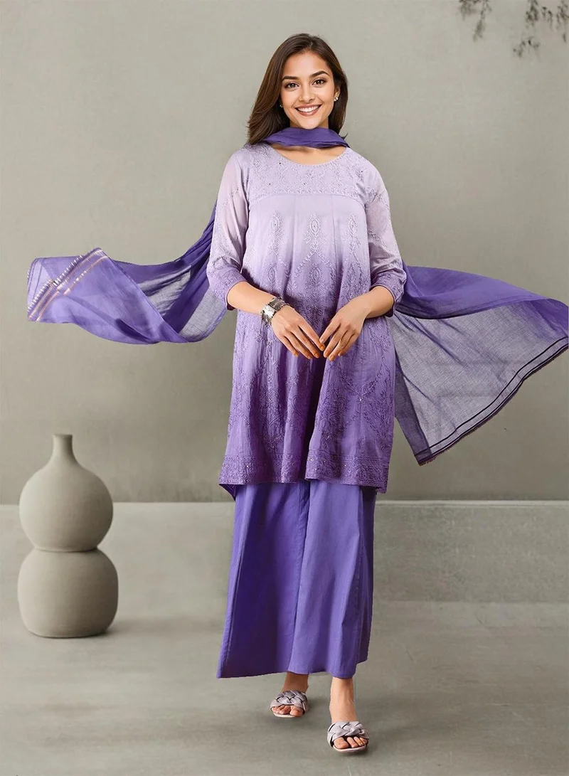 Women'S Purple Chiffon Self Design Full Length Palazzo Kurta Set