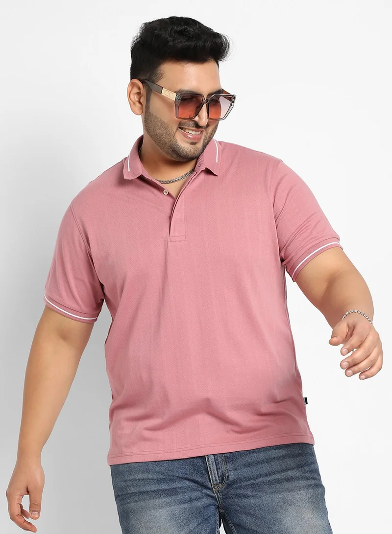 Instafab Plus Men's Saltbox Beige Ribbed Relaxed Polo T-Shirt For Casual Wear | Polo Neck | Short Regular Sleeves | Half-Zip Closure | Plus Size T-Shirt Crafted With Comfort Fit For Everyday Wear