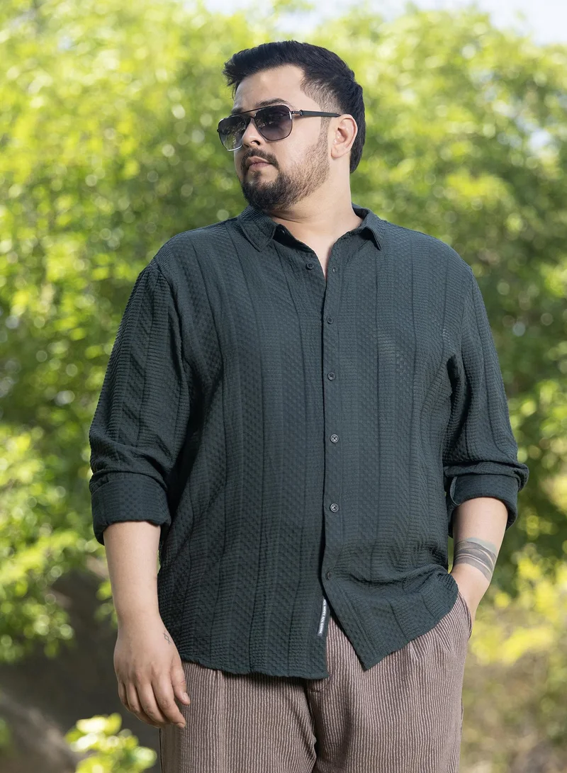 Instafab Plus Men's Emerald Green Parallel-Check Tactile Shirt For Casual Wear | Spread Collar | Long Cuffed Sleeves | Button Closure | Plus Size Shirt Crafted With Comfort Fit For Everyday Wear