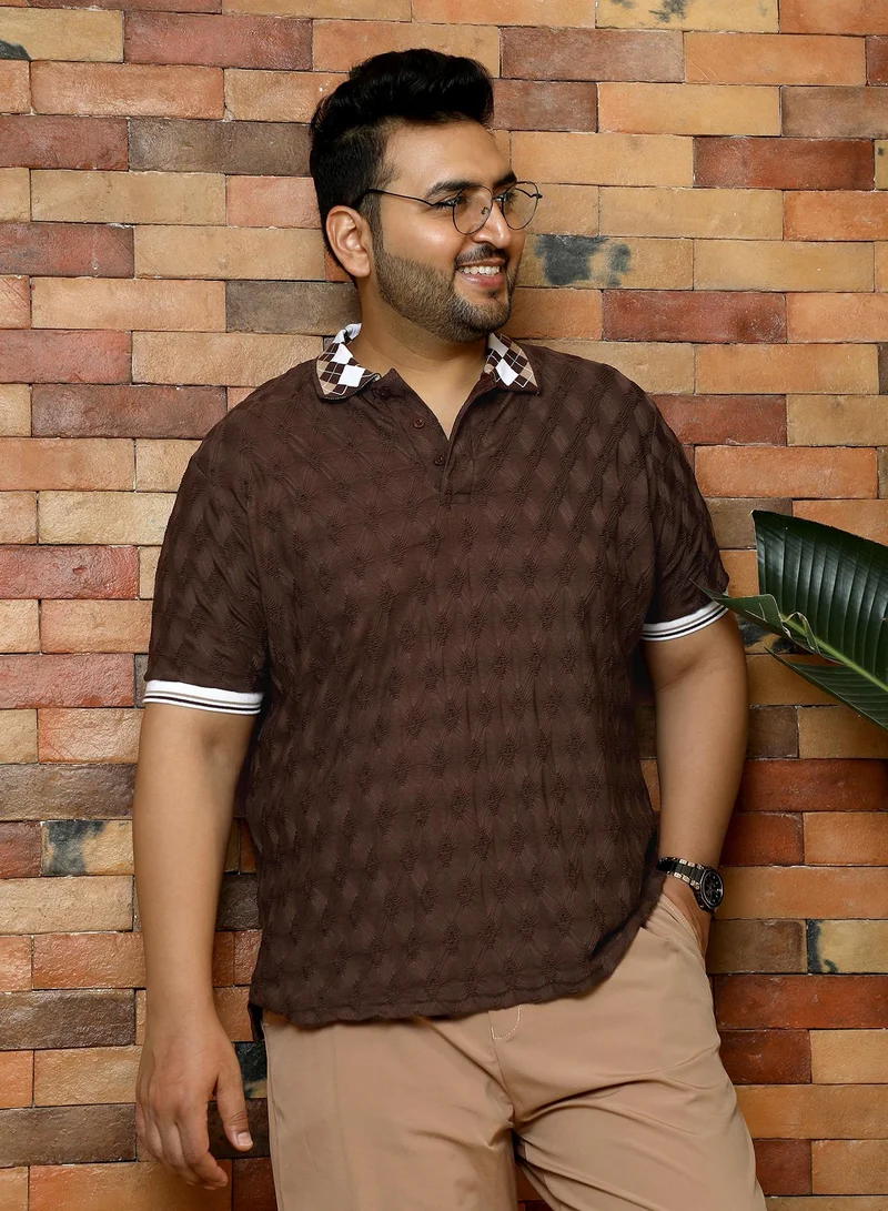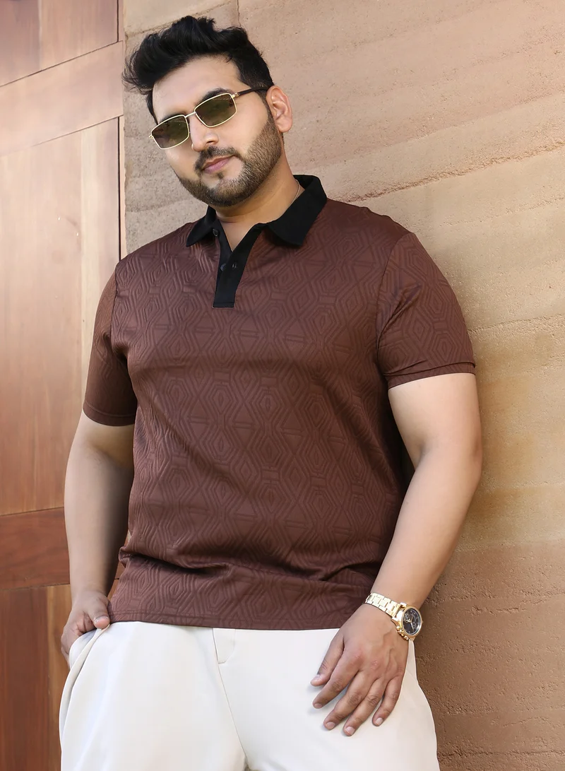 Men's Sienna Brown Arc-Tactile Polo T-Shirt For Casual Wear | Polo Neck | Short Regular Sleeves | Half-Button Closure | Plus Size T-Shirt Crafted With Comfort Fit For Everyday Wear