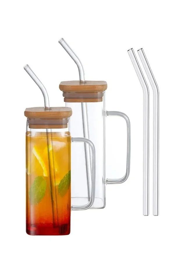 “Habibi Come to Dubai” Borosilicate Sipper Glasses – Set of 2, 550ML Can-Shaped Glasses with Bamboo Lids & Glass Straws