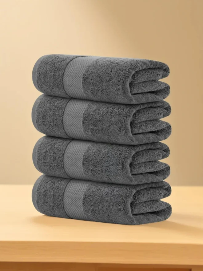 1CHASE Pack of 4 - Luxury Cotton Large Bath Towel, Grey 70x140cm
