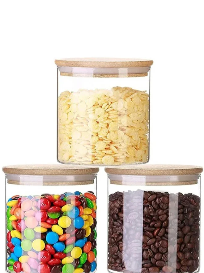 1CHASE 3-Piece Borosilicate Glass Food Storage Jar With Bamboo Lid 500ml
