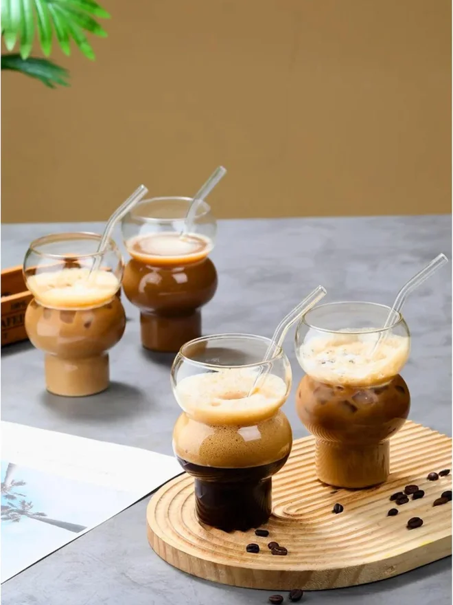 Ripple Shaped Drinking Glasses with Straws 330 ML (Set of 4)