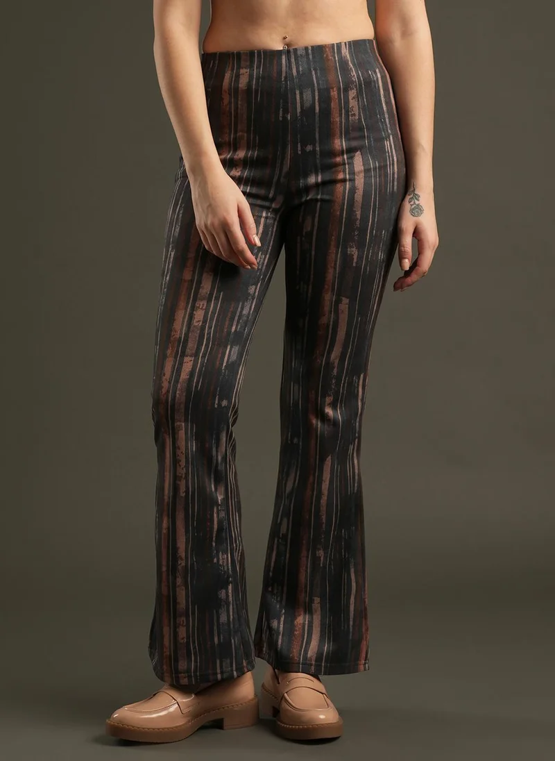 Globus Women Stretchable High-Rise Cut Out Detail Waist Tie-Up Front Slit Flared Party Treggings