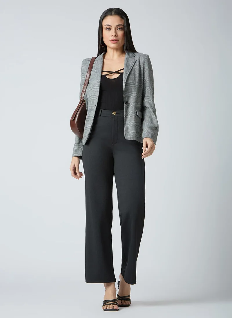 Globus Women Self Checked Design Stretchable Mid-Rise Straight Fit Workwear Trousers