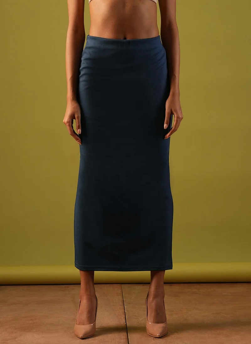 Globus Women Stretchable High-Rise Back Slit Midi Workwear Pencil Skirt