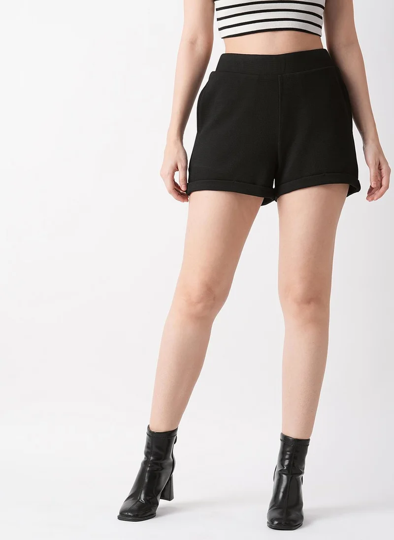 Globus Women Black Checkered Mid-Rise Elasticated Back Straight Fit Formal Trousers