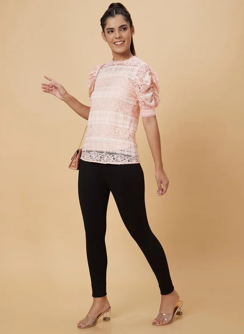 Globus Women Peach-Coloured Flared Sleeves Crop Top