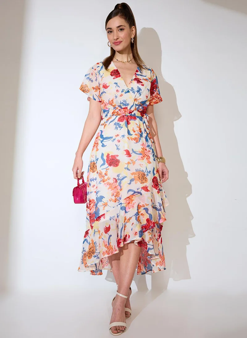 Floral Print Strappy A-Line Fusion Maxi Dress