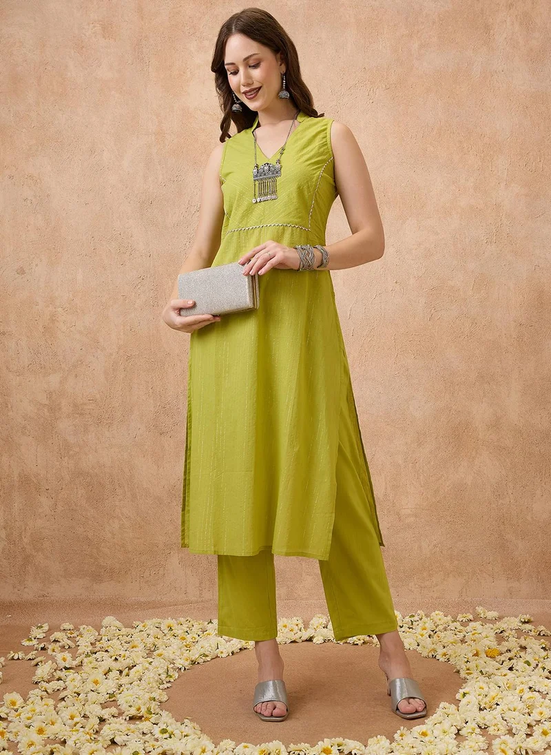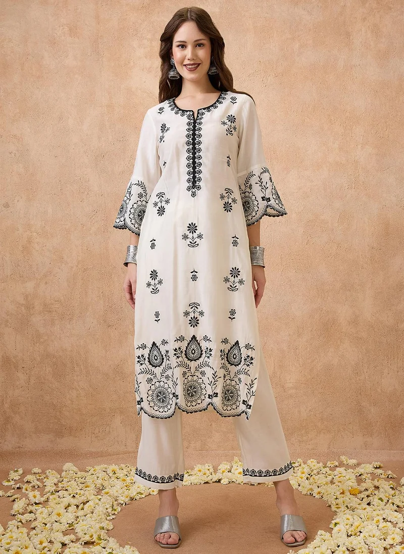 Embroidered V-Neck Lace A-Line Kurta and Flared Palazzos Set