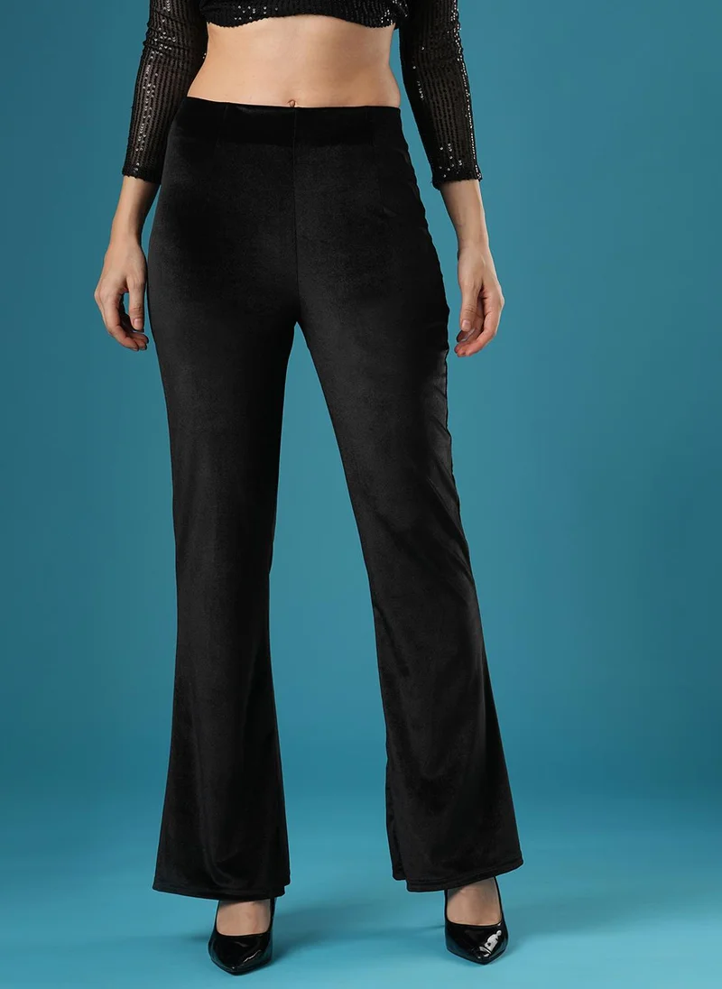 Globus Women Teal Round Neck Long Sleeves Cut-Out Detail Gathered & Pleated Velvet Party Top