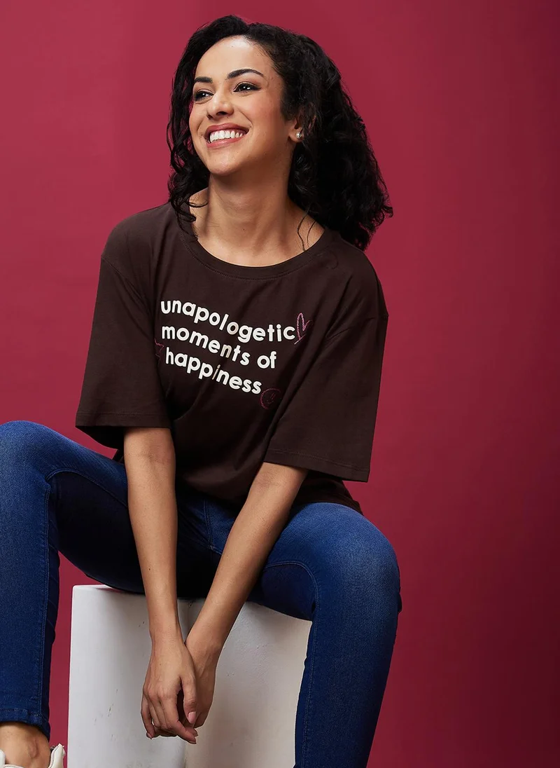 Globus Women Typography Printed Pure Cotton Oversized T-Shirt