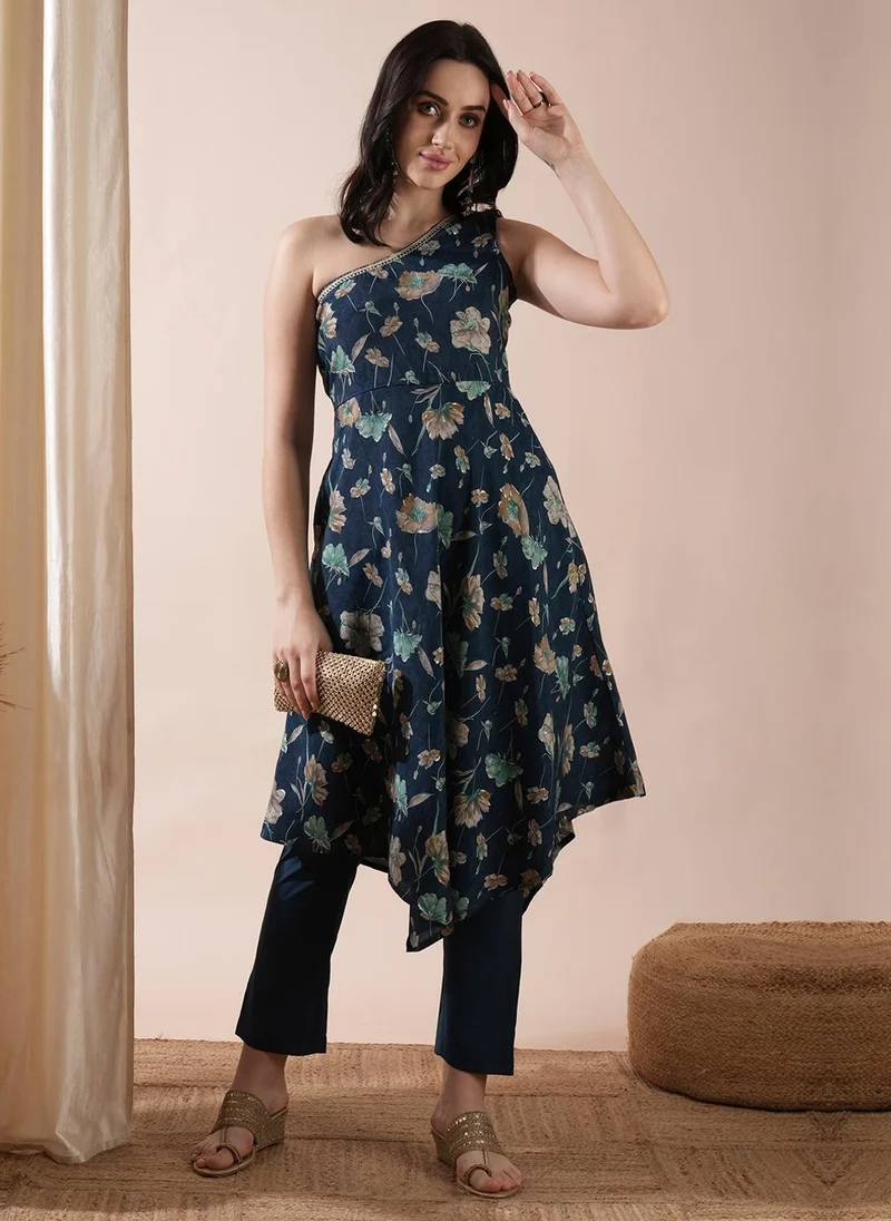 Globus Women Floral Printed Mirror Work Cotton Ethnic Tunic