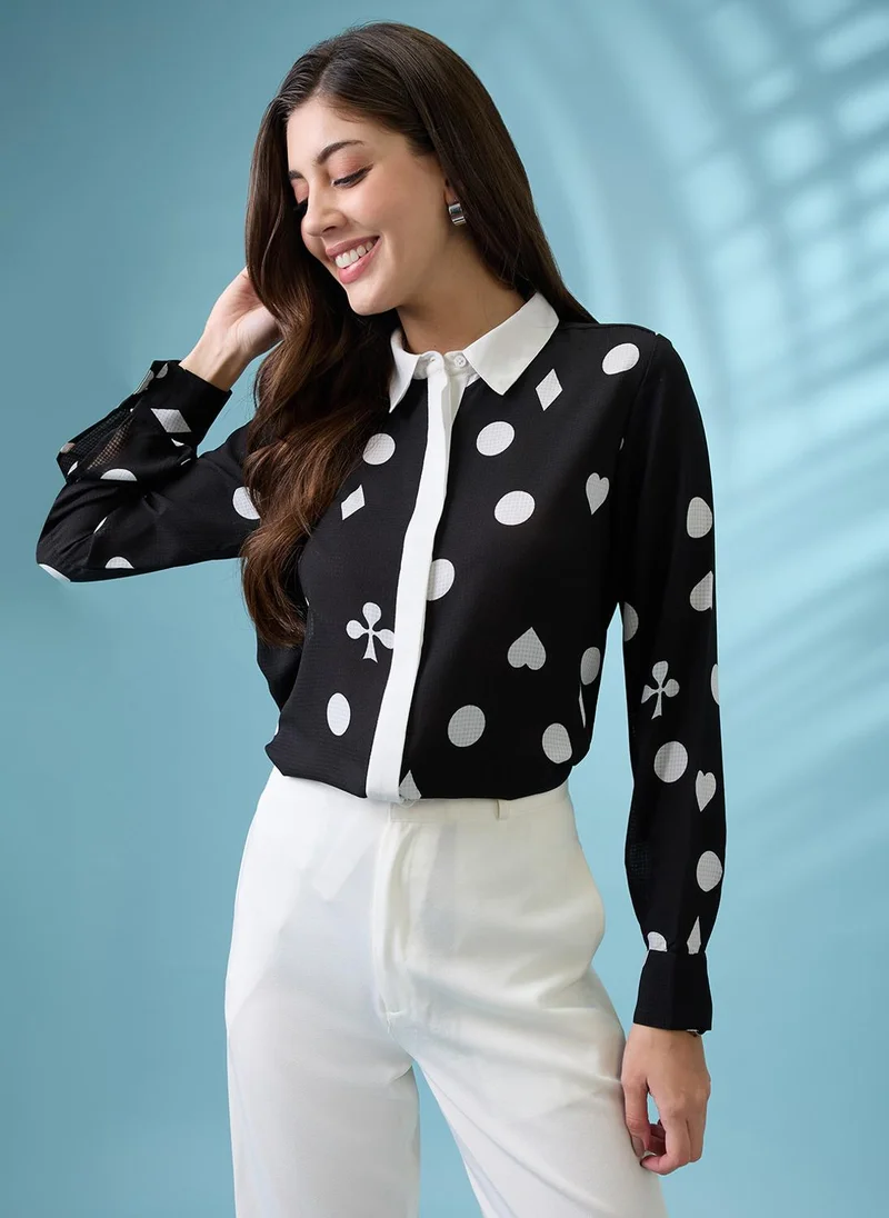 Globus Women Self Design High Neck Scalloped Hem Party Top