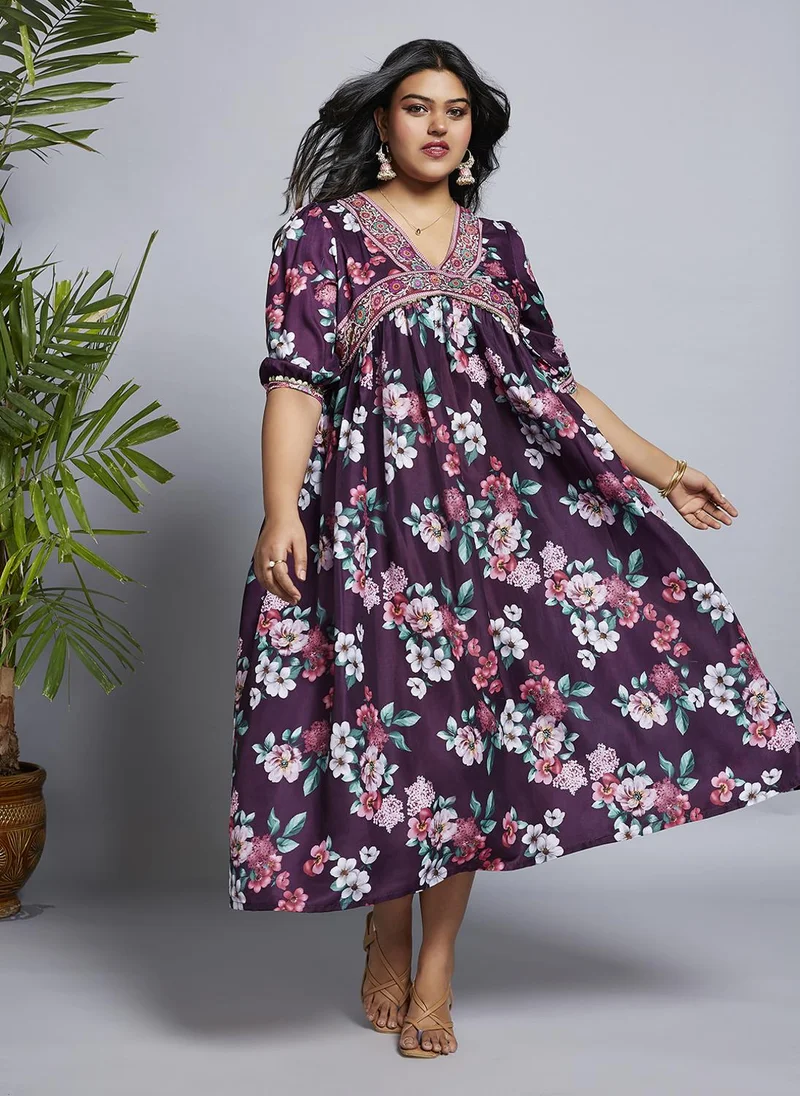Back Tie-up Flared Hem Bandhani Print Maxi Dress