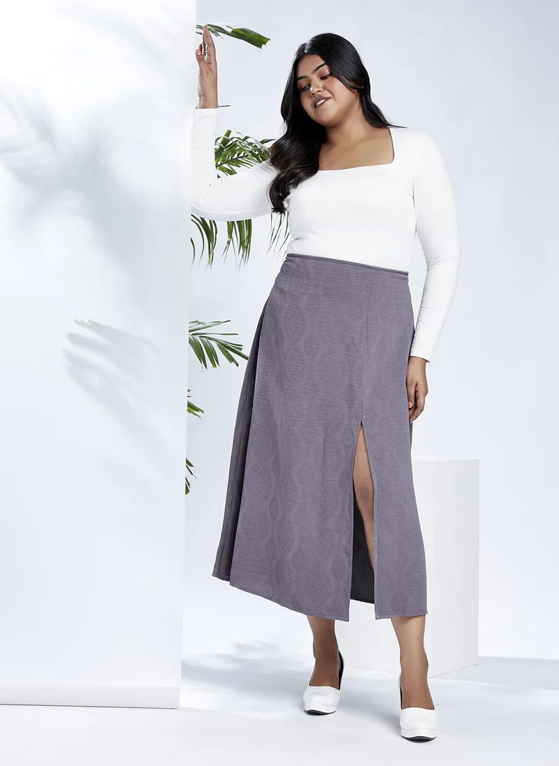 Globus Women Stretchable Solid Mid-Rise Back Slit Midi Denim Pencil Skirt