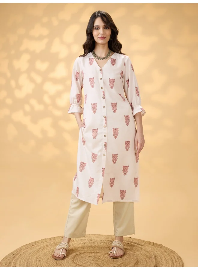 Globus Floral Print Mandarin Collar A-Line Kurta and Trouser Set