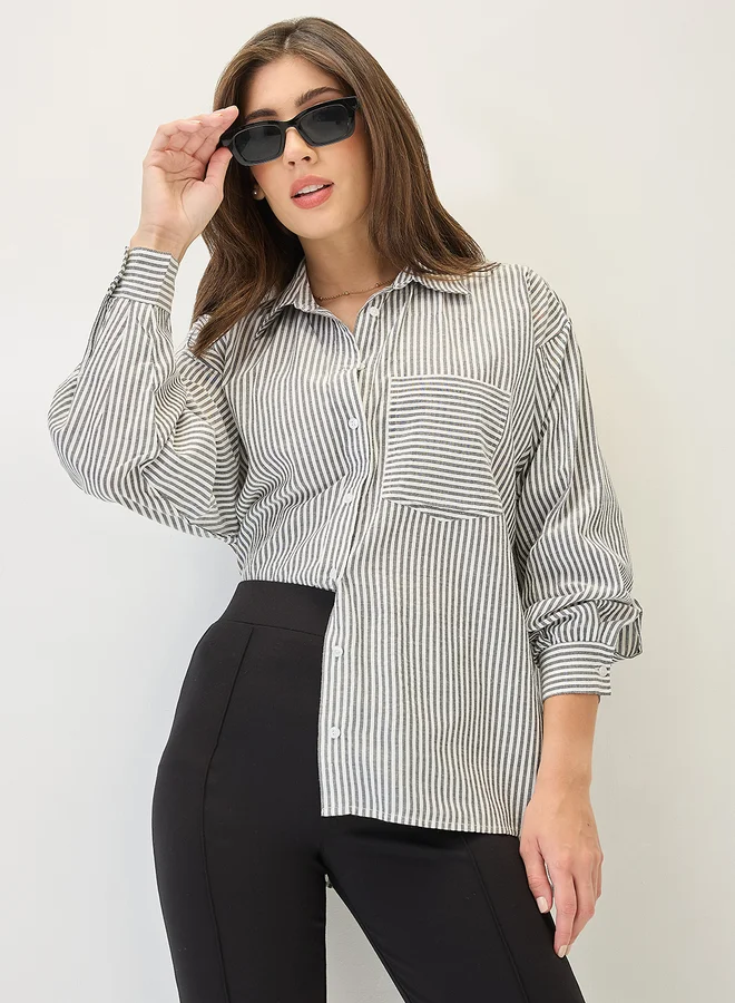 Globus Black Striped High-Low Hem Workwear Shirt