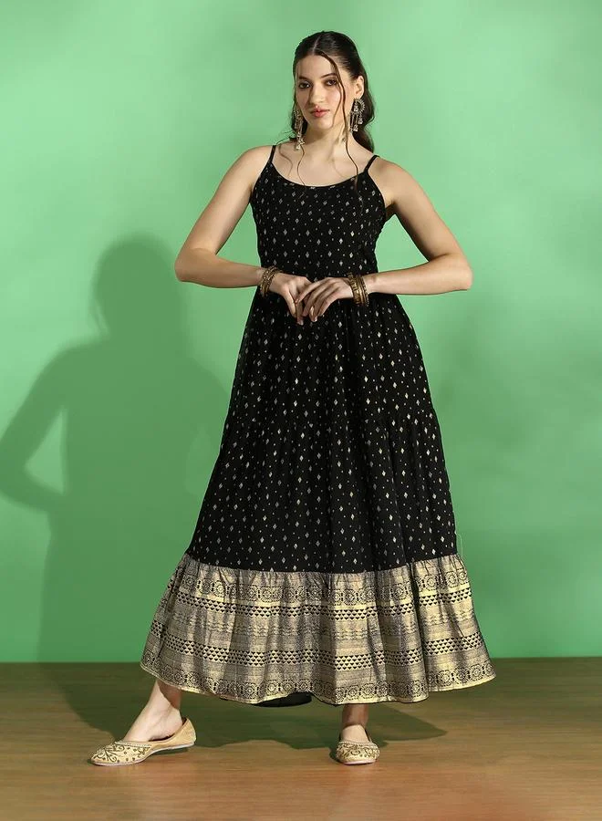 Strappy Foil Ethnic Motif Festive Maxi Dress