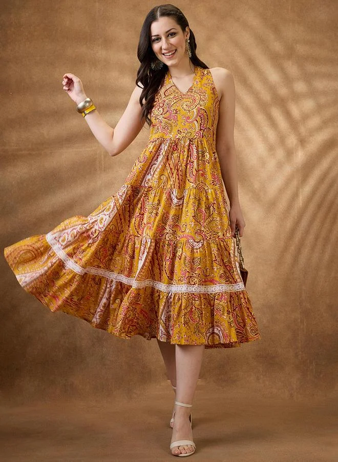 Paisley Print Halter Neck Midi Fusion Dress