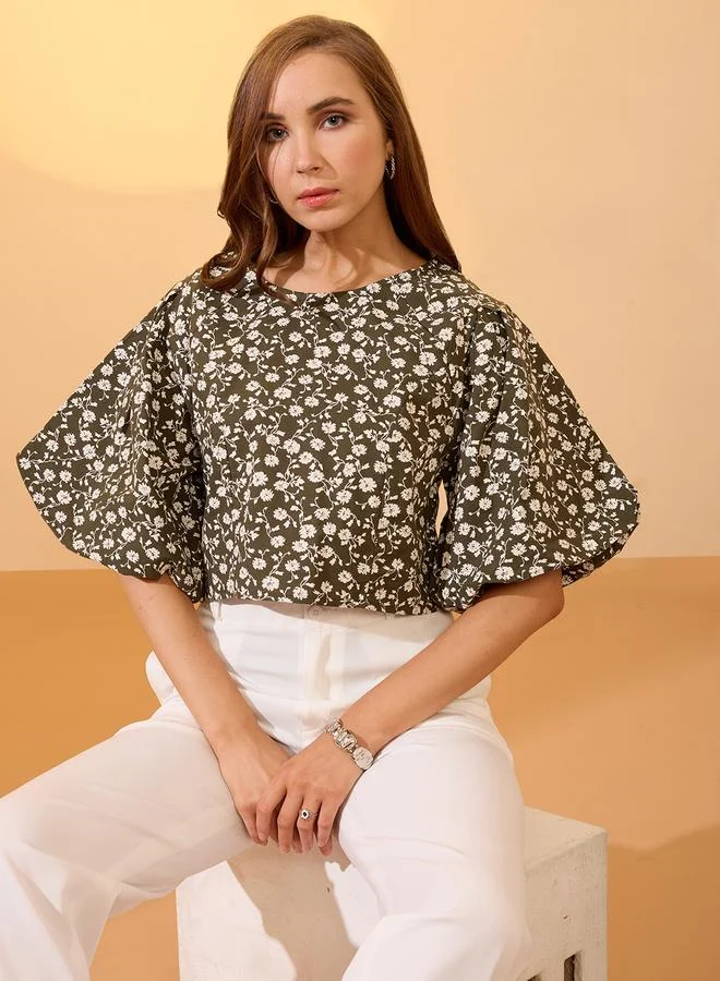 Globus Women Floral Printed Puff Sleeves A-Line Mini Dress with Smocked Back